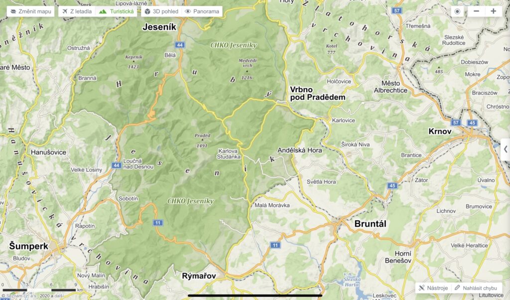 In our country, the web application mapy.cz is the most suitable for scouting of waterfalls http://www.mapy.cz . Unlike other navigations designed mainly for car travel, this navigation has its own tourist map. To make a map type choice, click at the top left Změnit mapu.