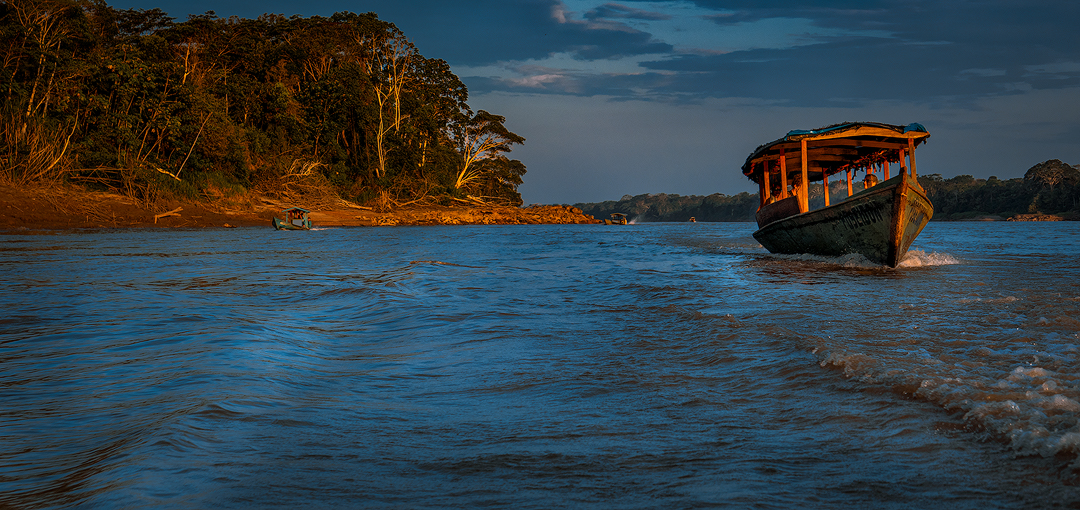 Večer na řece Madre de Dios v amazonské oblasti